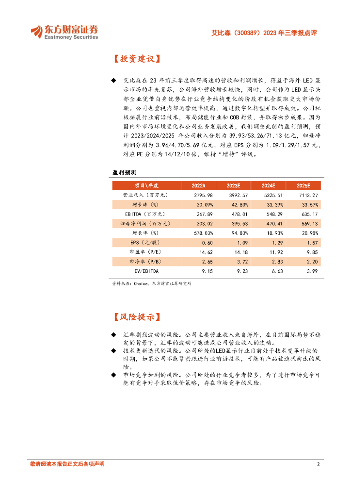 东方财富证券:艾比森(300389)-2023年三季报点评:Q3业绩延续高增长,内外双攻抓住行业复苏机遇(2023-10-26).pdf