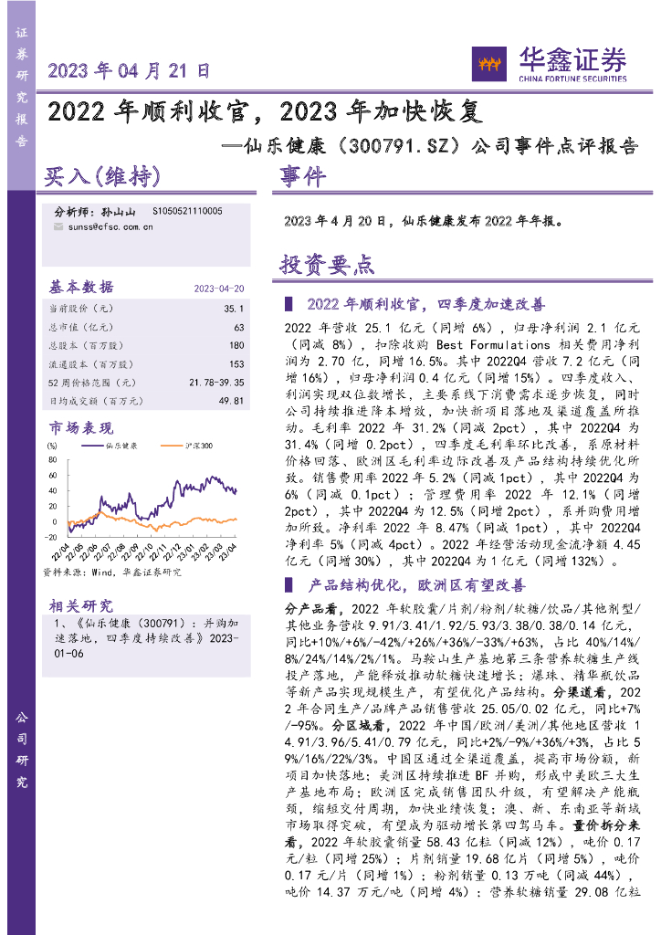 华鑫证券:仙乐健康(300791)-公司事件点评报告:2022年顺利收官,2023年加快恢复.pdf