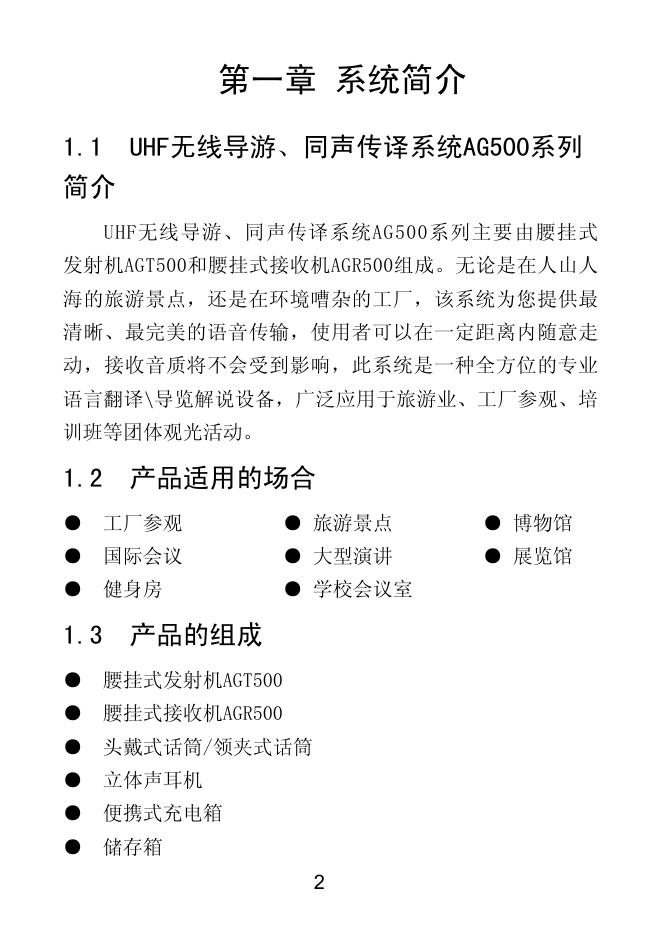ARRAY UHF无线导游、同声传译系统AG500系列 用户手册.pdf