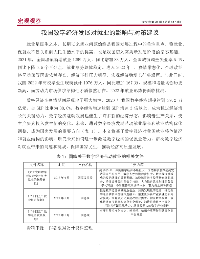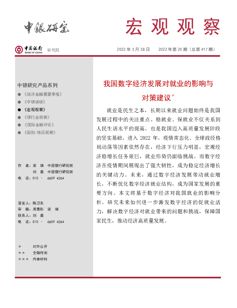中国银行:宏观观察2022年第20期(总第417期):我国数字经济发展对就业的影响与对策建议.pdf