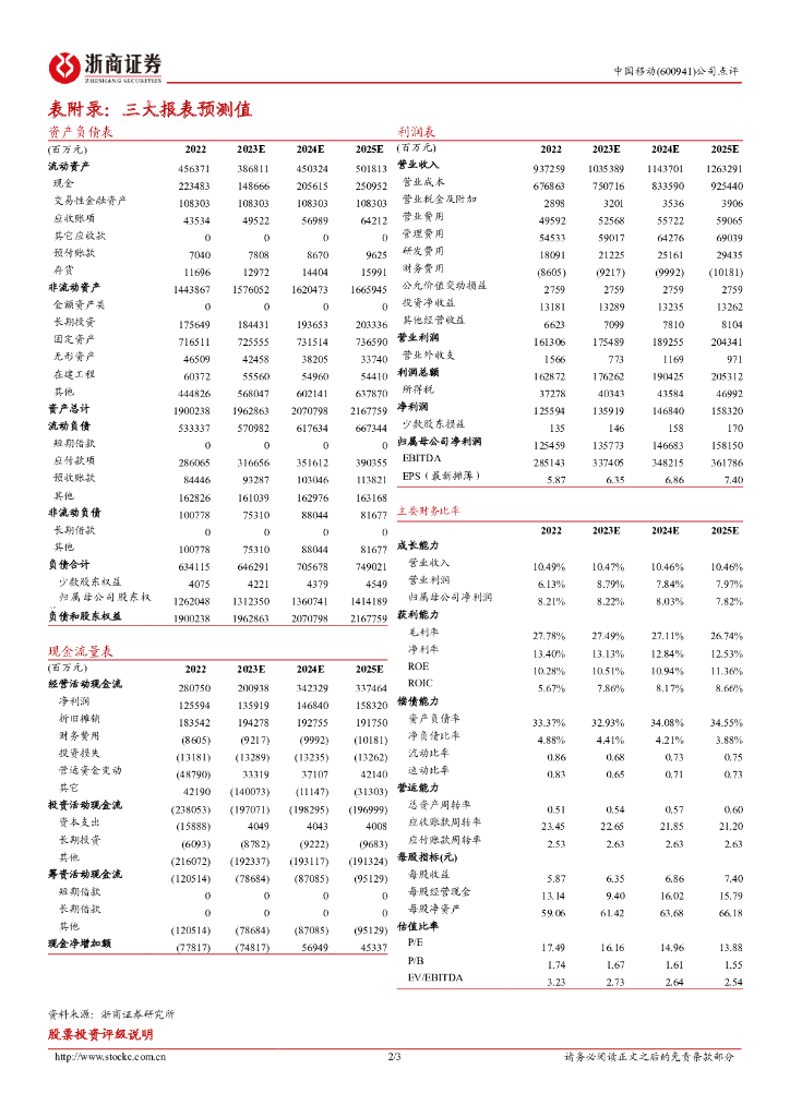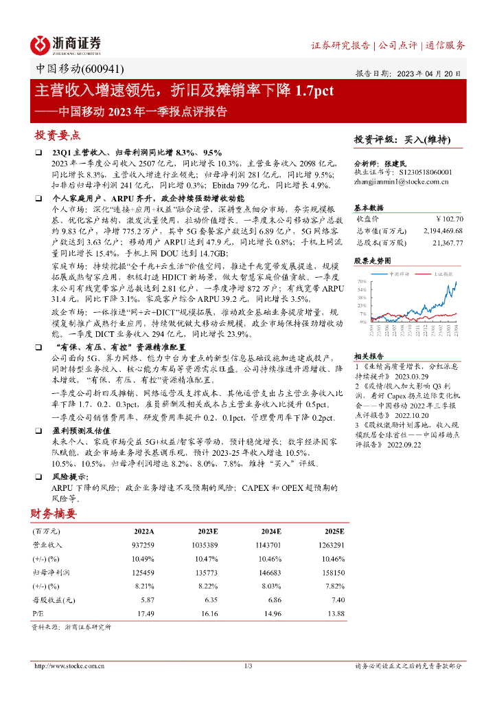 浙商证券:中国移动2023年一季报点评报告:主营收入增速领先,折旧及摊销率下降1.7pct.pdf
