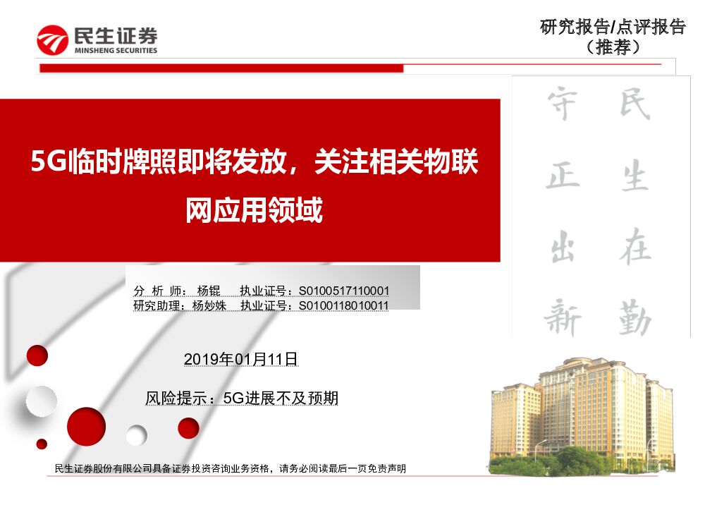 民生证券:通信行业:5G临时牌照即将发放,关注相关物联网应用领域.pdf