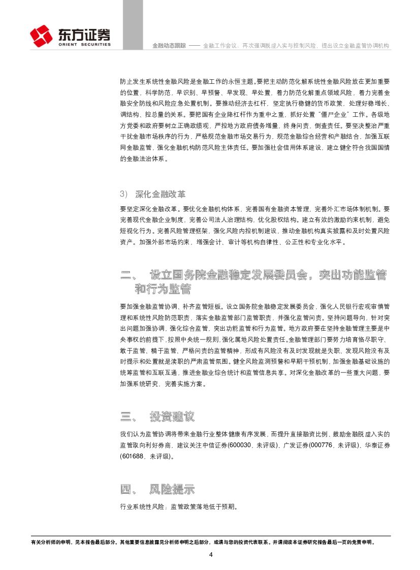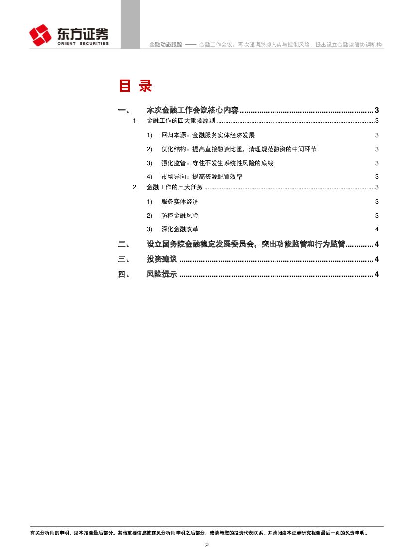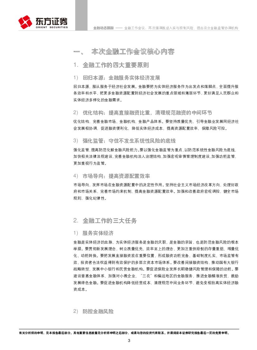 东方证券:金融工作会议:再次强调脱虚入实与控制风险,提出设立金融监管协调机构.pdf