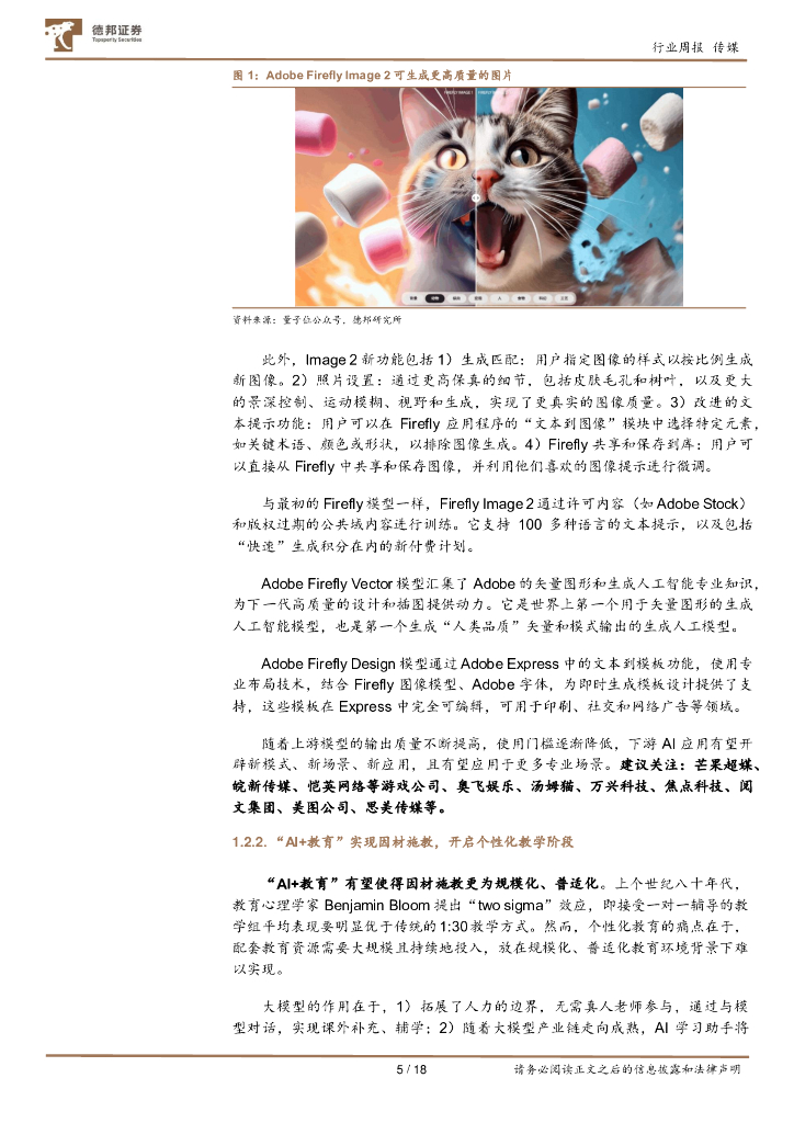 德邦证券:传媒互联网行业周报:AdobeFirefly Image 2效果显著提升;AI助力个性教育普惠化.pdf