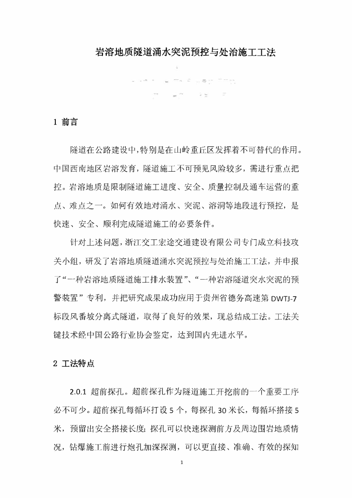 岩溶地质隧道涌水突泥预控与处治施工工法.pdf