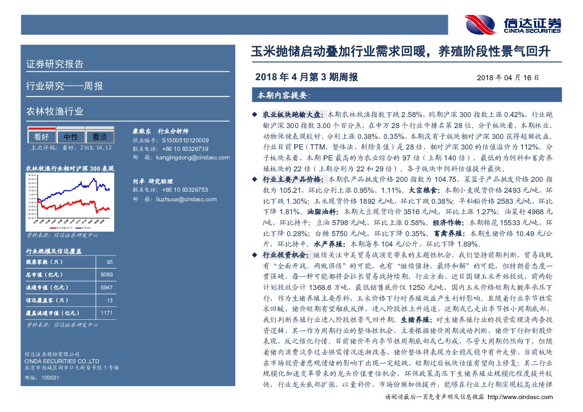 信达证券:农林牧渔2018年4月第3期周报:玉米抛储启动叠加行业需求回暖,养殖阶段性景气回升.pdf