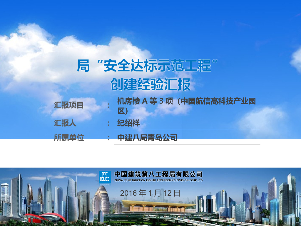 中建“安全示范达标工程”创建经验汇报—— 机房楼A等3项.ppt