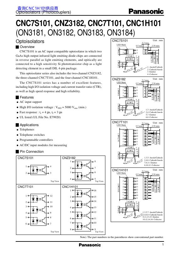 Panasonic CNC7S101, CNZ3182, CNC7T101, CNC1H101 (ON3181, ON3182, ON3183, ON3184) 数据手册.pdf