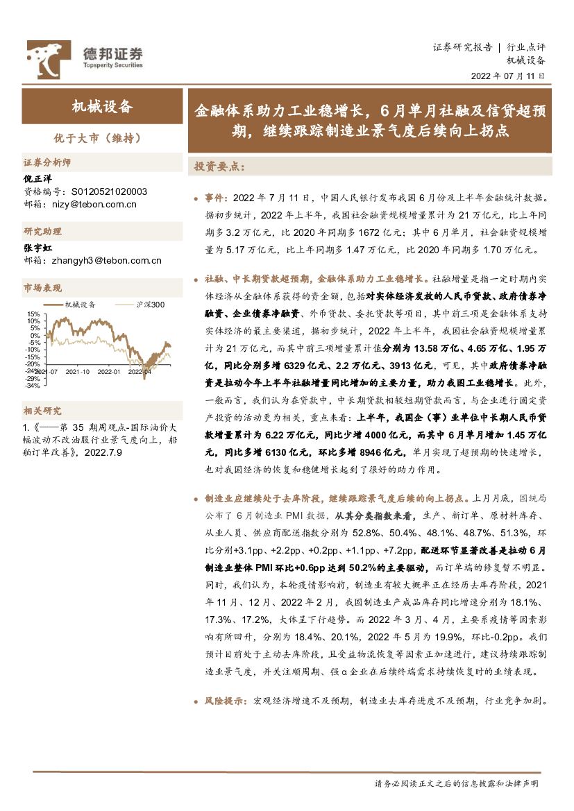 德邦证券:机械设备:金融体系助力工业稳增长,6月单月社融及信贷超预期,继续跟踪制造业景气度后续向上拐点.pdf