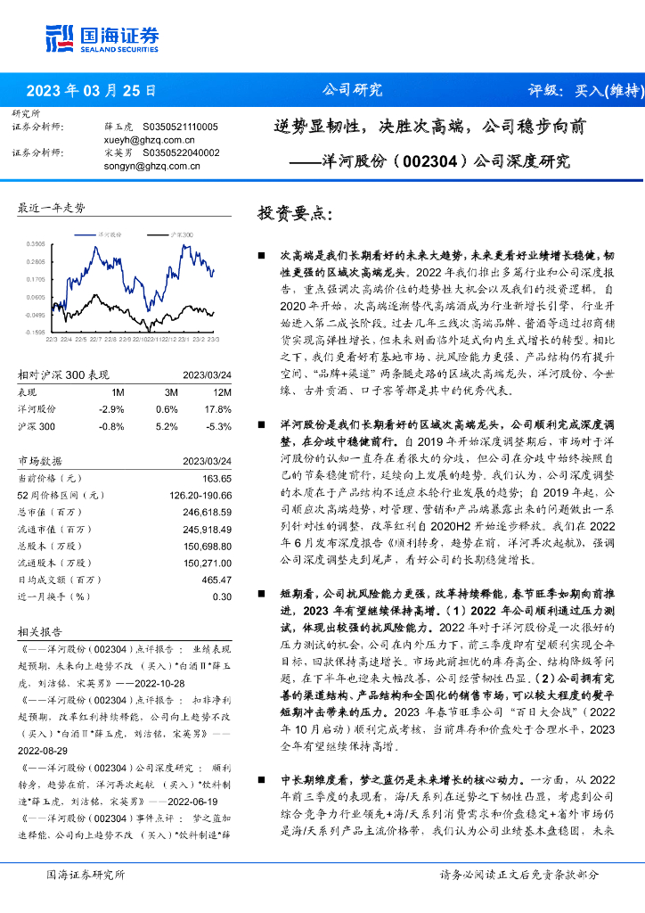 国海证券:洋河股份(002304)-公司深度研究:逆势显韧性,决胜次高端,公司稳步向前.pdf