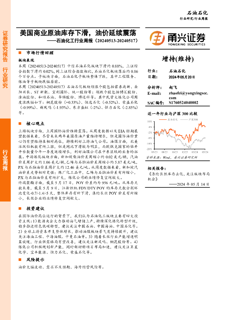 甬兴证券:石油化工行业周报:美国商业原油库存下滑,油价延续震荡.pdf