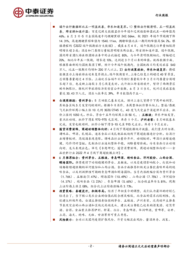 中泰证券:食品饮料周思考(第22周):稳增长政策陆续出台,端午出行数据向好.pdf