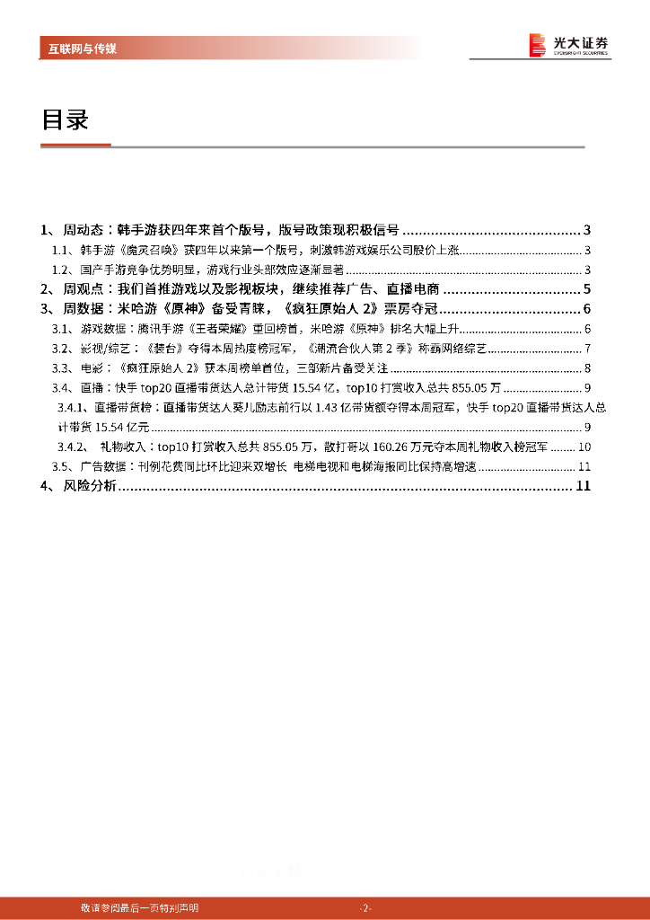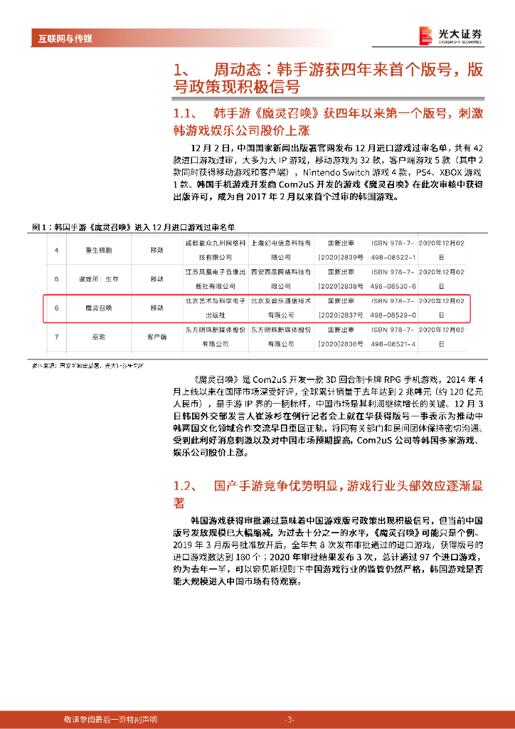 光大证券:传媒互联网周报:韩手游获四年来首个版号 首推游戏以及影视板块.pdf