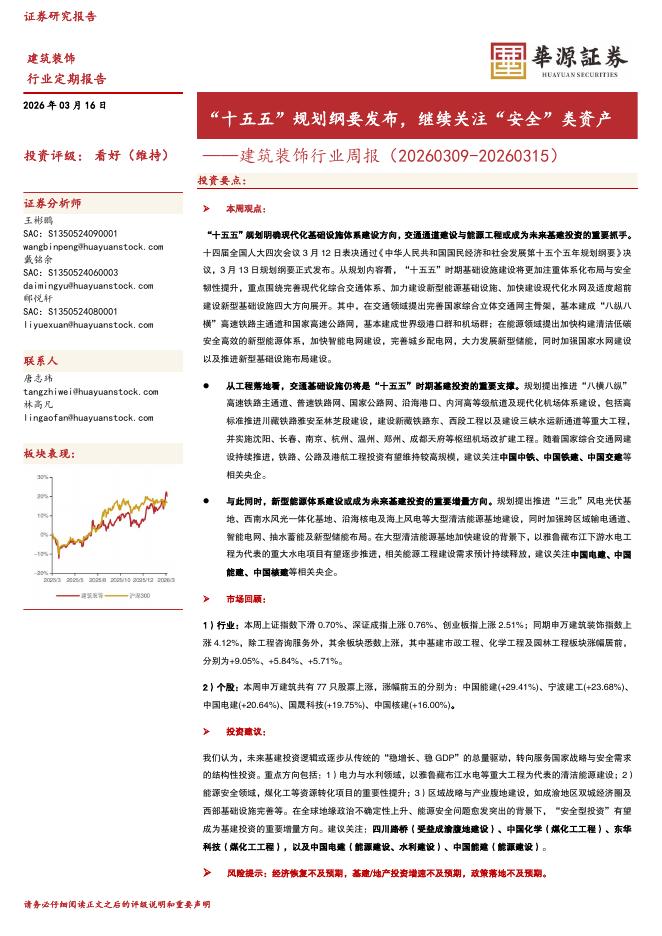 华源证券:建筑装饰行业周报:“十五五”规划纲要发布,继续关注“安全”类资产.pdf