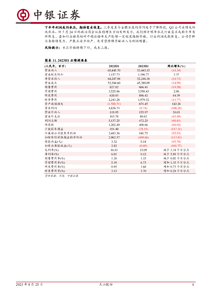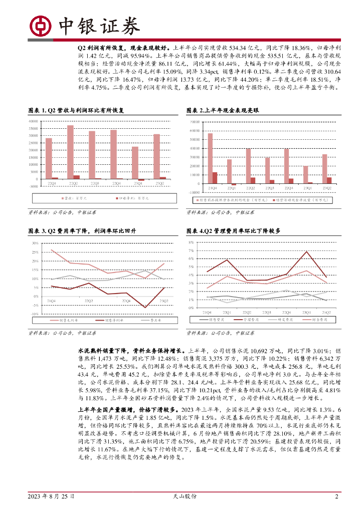 中银证券:天山股份(000877)-Q2利润修复,现金表现较好.pdf