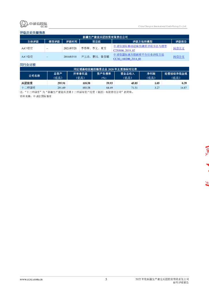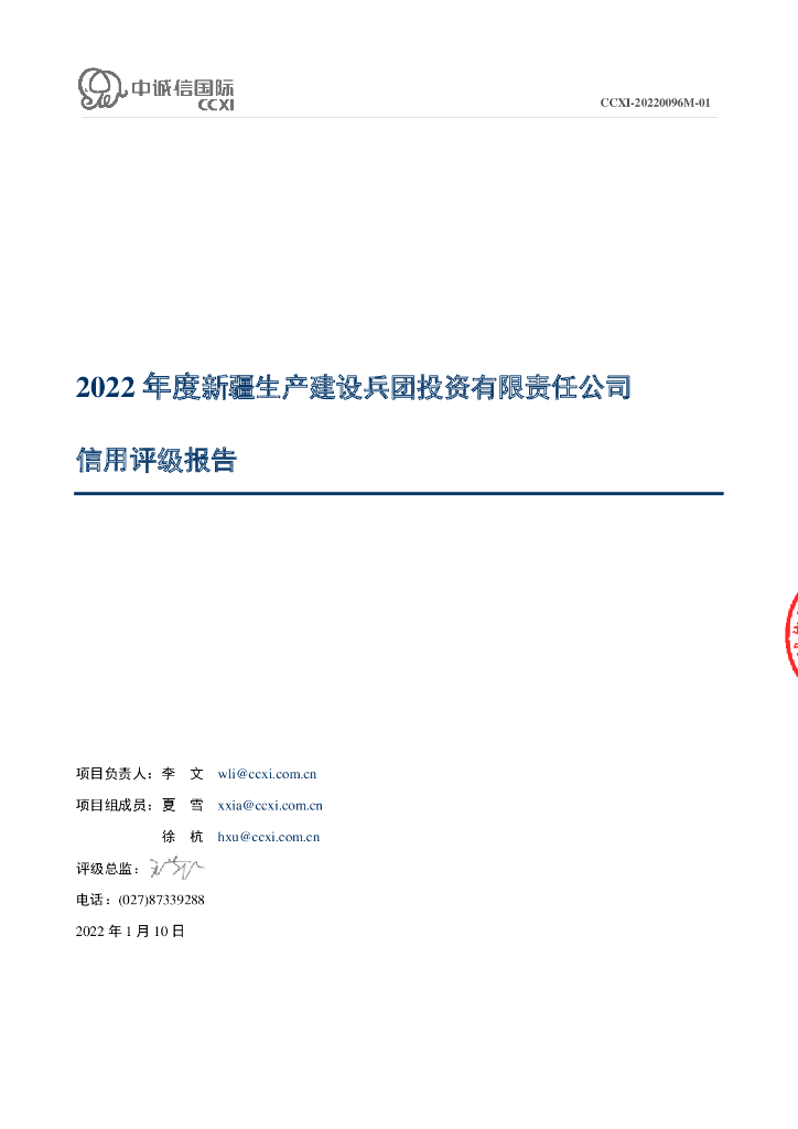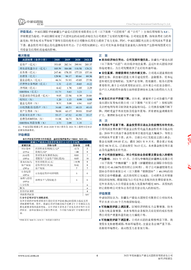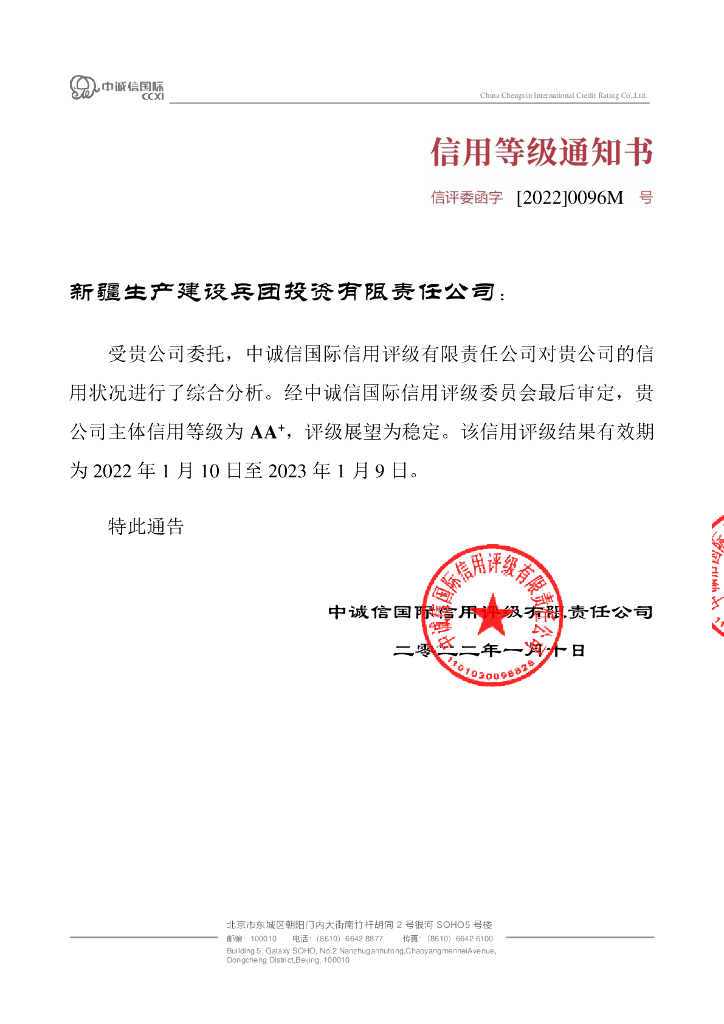 中诚信:新疆生产建设兵团投资有限责任公司2022年度主体信用评级报告及跟踪评级安排.pdf