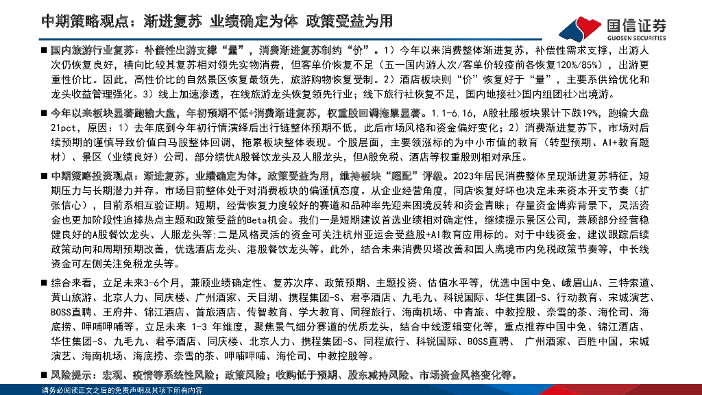 国信证券:社会服务行业2023年中期投资策略:渐进复苏 业绩确定为体 政策受益为用.pdf