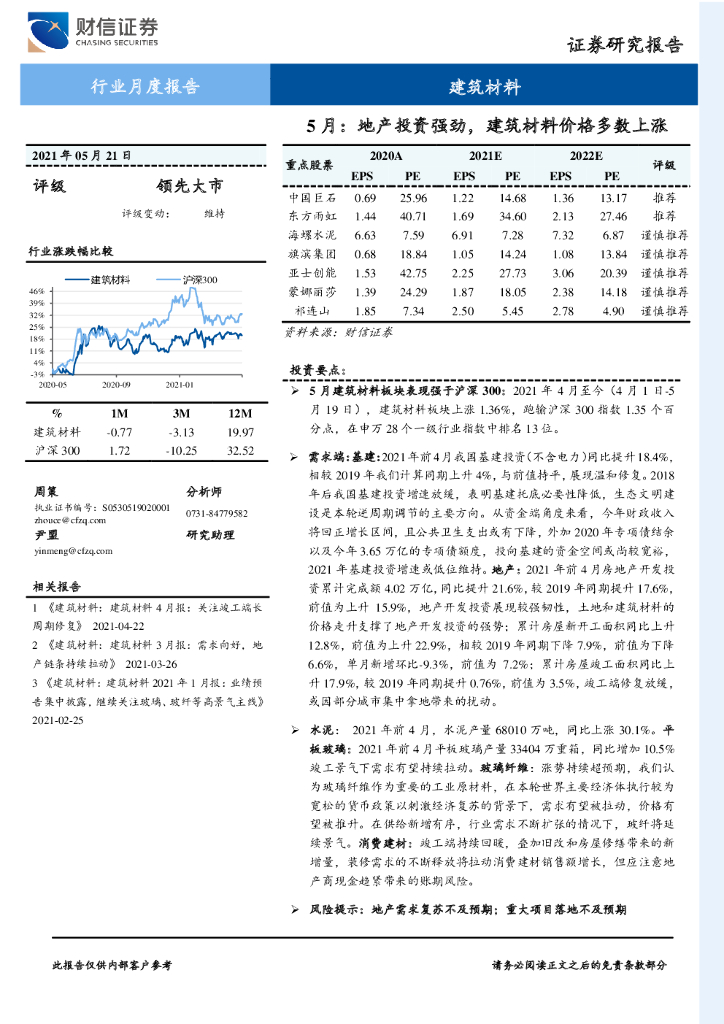 财信证券:建筑材料5月:地产投资强劲,建筑材料价格多数上涨.pdf