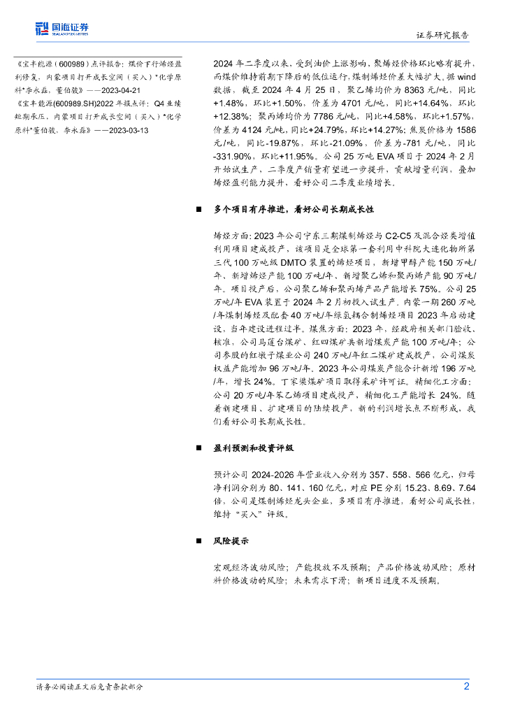 国海证券:宝丰能源(600989)-Q1业绩同增,煤制烯烃盈利有望进一步提升年一季报点评2024.pdf
