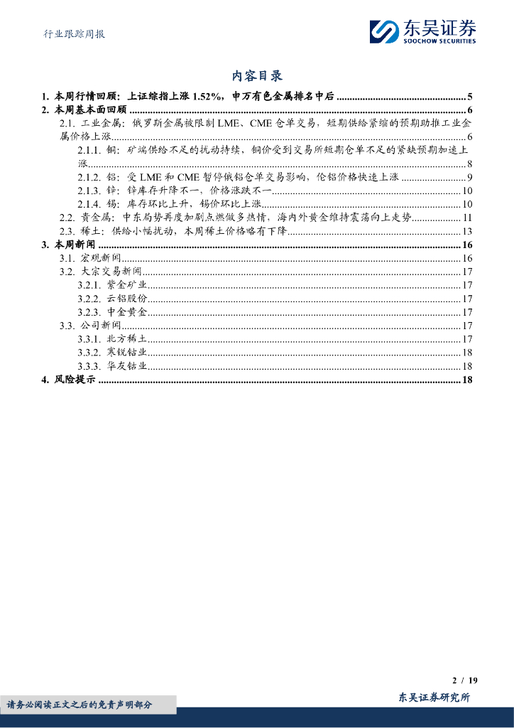 东吴证券:有色金属行业跟踪周报:俄罗斯金属被限制LME、CME仓单交易,短期供给紧缩的预期助推工业金属价格上涨.pdf
