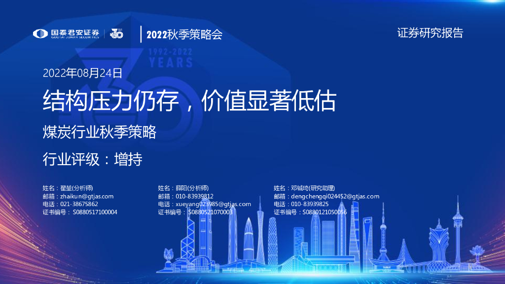 国泰君安:煤炭行业秋季策略:结构压力仍存,价值显著低估.pdf