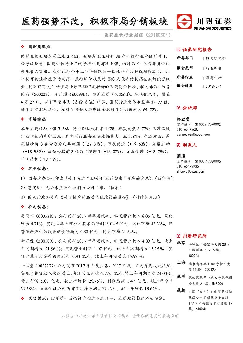 川财证券:医药生物行业周报:医药强势不改,积极布局分销板块.pdf