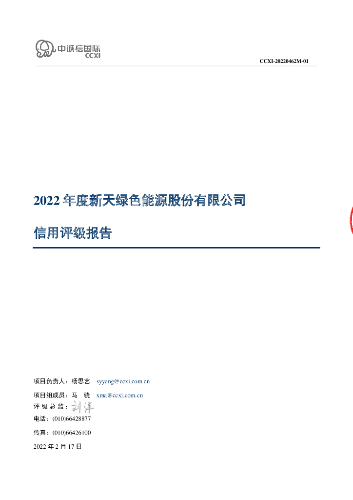 中诚信:新天绿色能源股份有限公司主体信用评级报告及跟踪评级安排.pdf