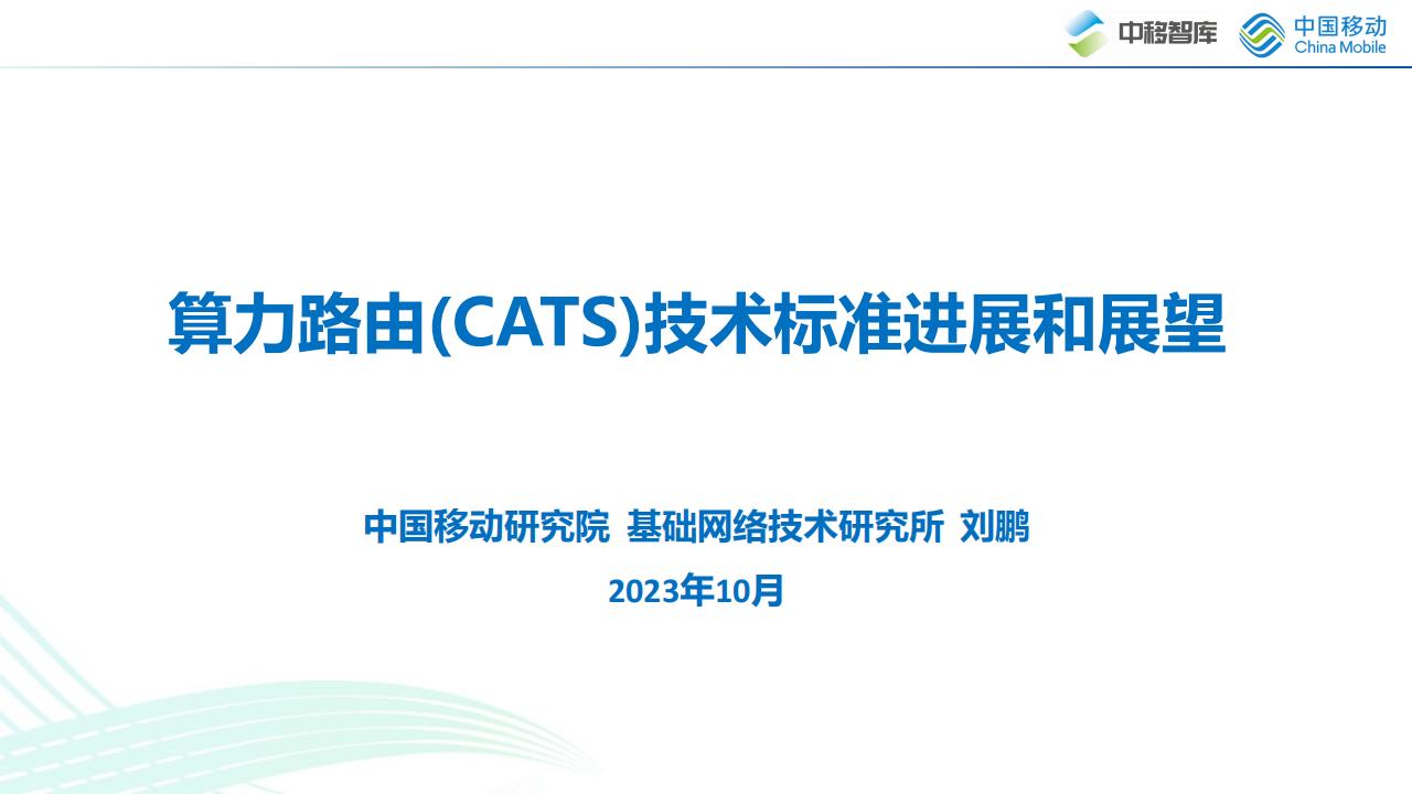 中国移动通信研究院(刘鹏):算力路由(CATS)技术标准进展和展望.pdf
