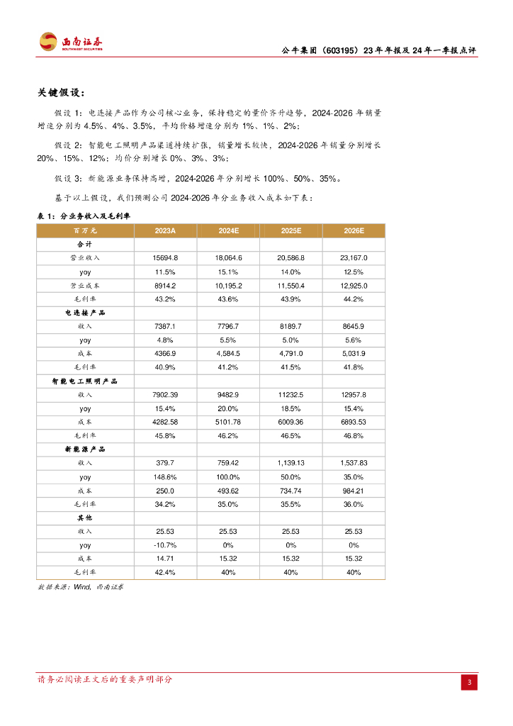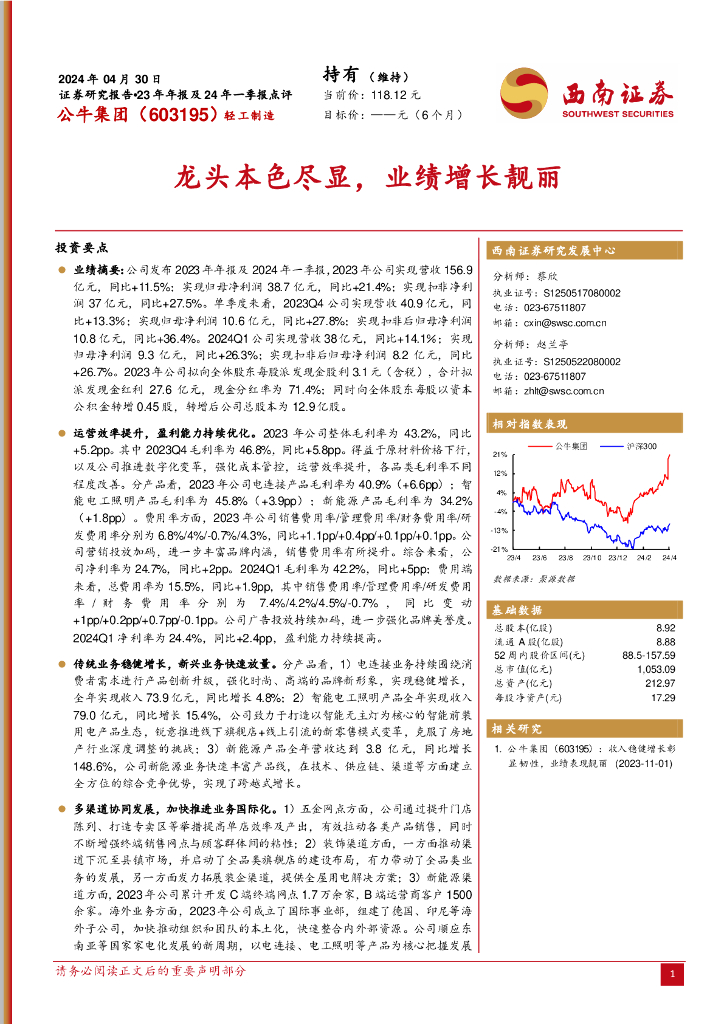 西南证券:公牛集团(603195)-23年年报及24年一季报点评:龙头本色尽显,业绩增长靓丽.pdf