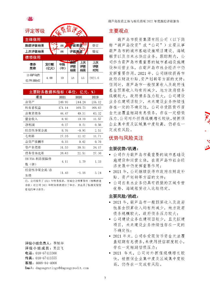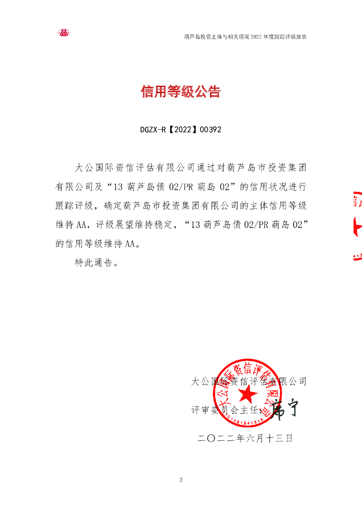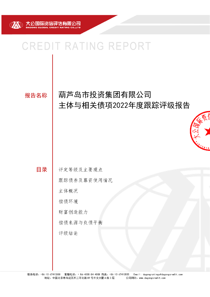 大公:葫芦岛市投资集团有限公司主体与相关债项2022年度跟踪评级报告.pdf