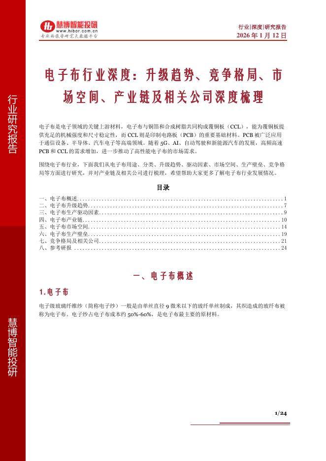 慧博智能投研:电子布行业深度:升级趋势、竞争格局、市场空间、产业链及相关公司深度梳理.pdf