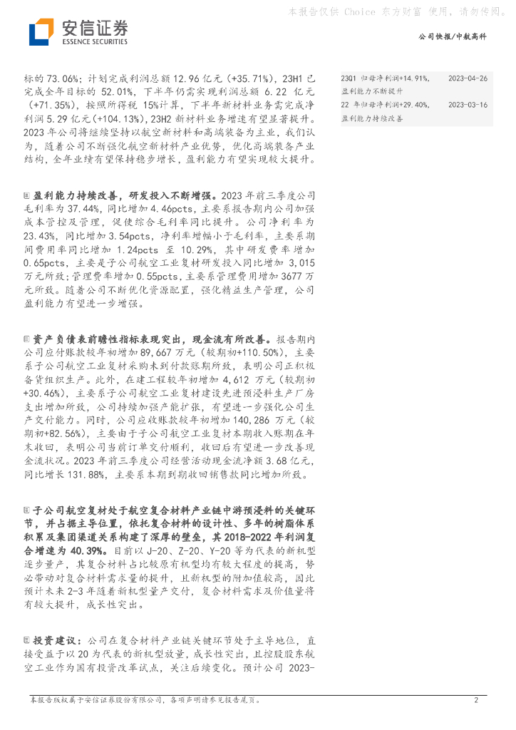 安信证券:中航高科(600862)-新材料业务提速显著,预计Q4净利润同比+56.91%.pdf