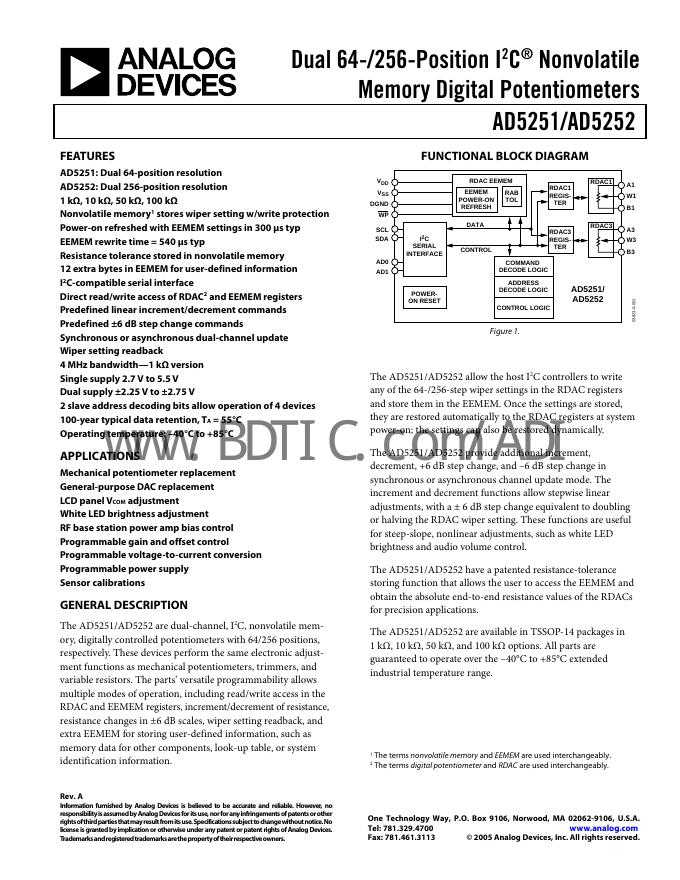 ANALOG DEVICES AD5251/AD5252 数据手册.pdf