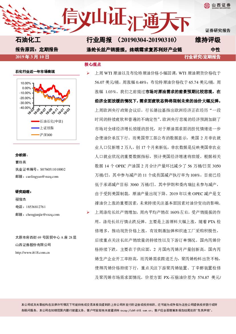 山西证券:石油化工行业周报:涤纶长丝产销提振,终端需求复苏利好产业链.pdf