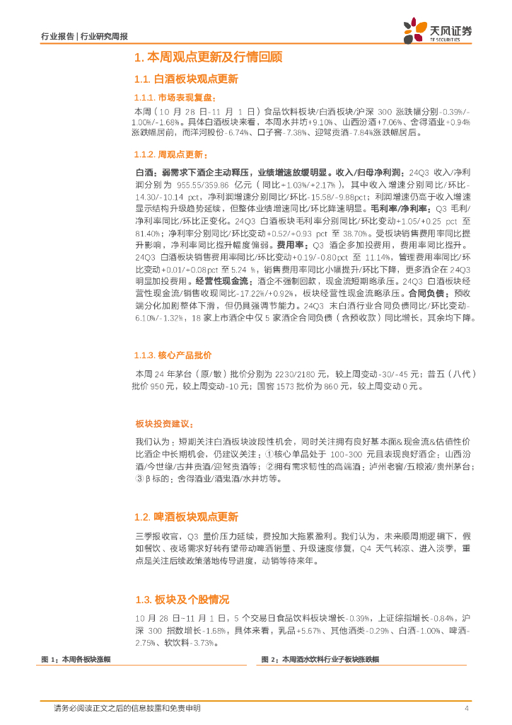 天风证券:食品饮料行业酒水饮料周报:弱需求下酒企主动释压,业绩增速放缓明显.pdf