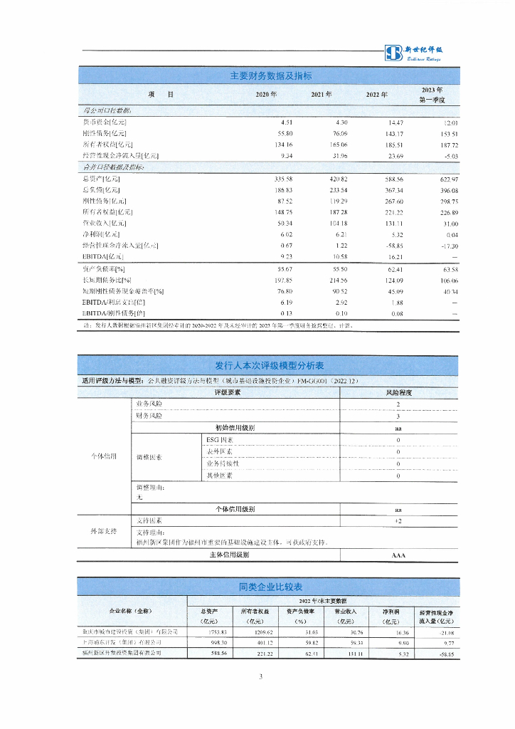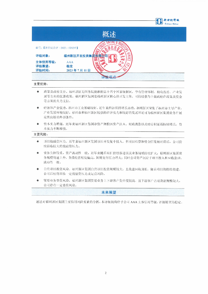 新世纪:福州新区开发投资集团有限公司信用评级报告.pdf