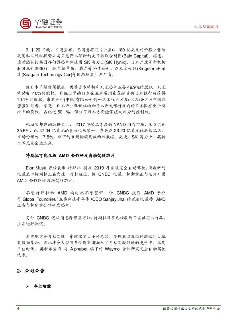 华融证券:人工智能周报:东芝以180亿美元出售其存储器业务.pdf
