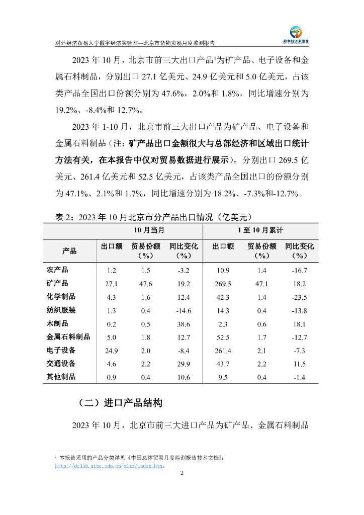 对外经济贸易大学:北京市货物贸易月度监测报告(2023年1-10月).pdf