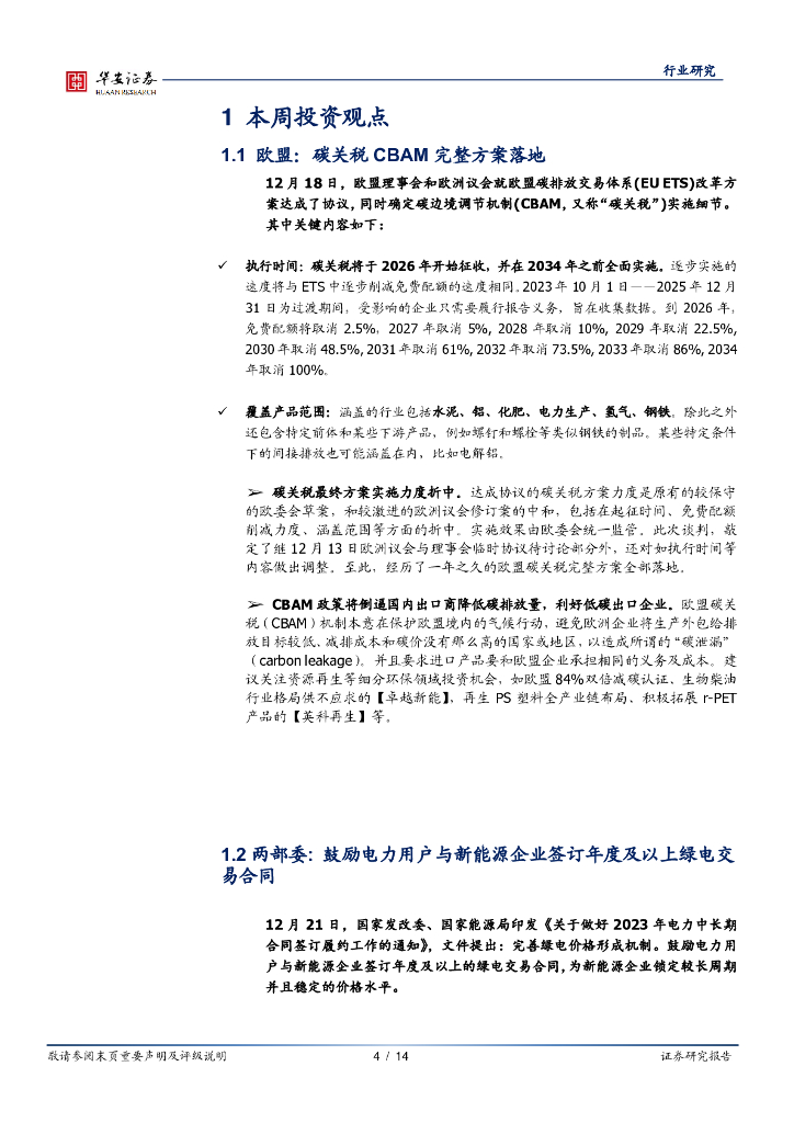 华安证券:公用事业行业周报:欧盟碳关税完整方案落地,两部委发文推动绿电交易.pdf