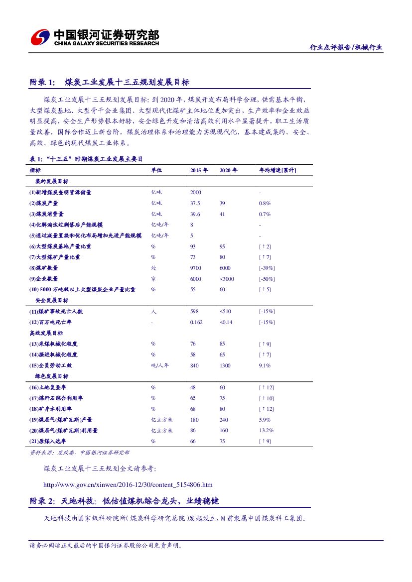 中国银河:煤炭“十三五”规划提出置换5亿先进产能、提高机械化程度,煤机行业有望受益.pdf
