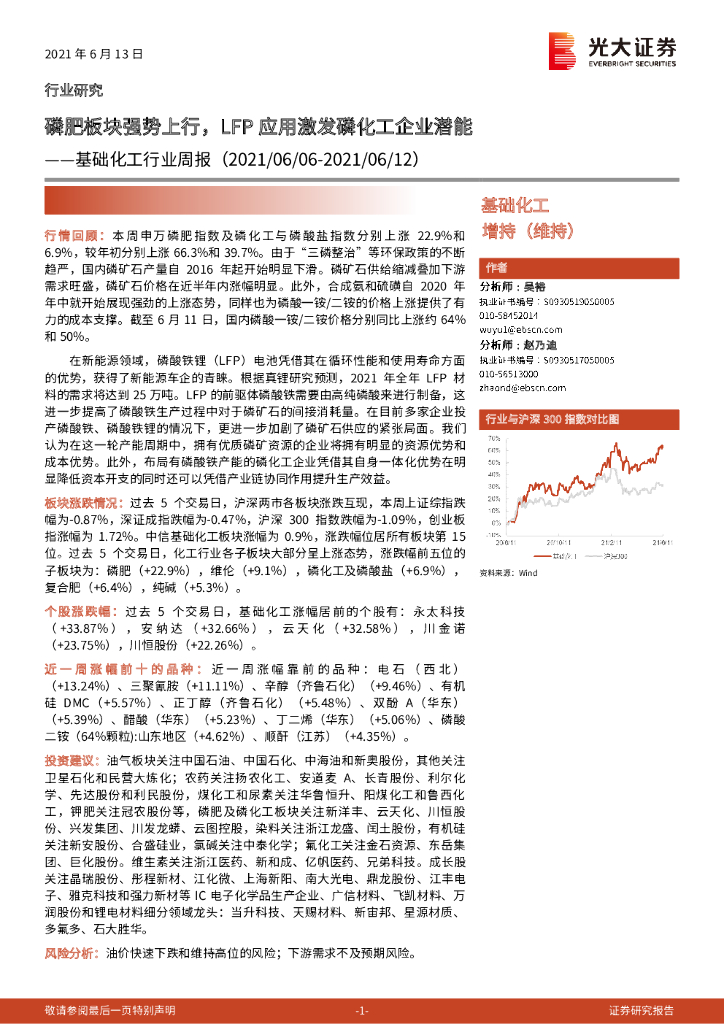 光大证券:基础化工行业周报:磷肥板块强势上行,LFP应用激发磷化工企业潜能.pdf
