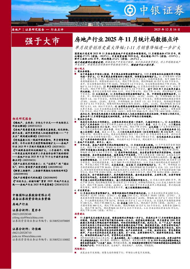 中银证券:房地产行业2025年11月统计局数据点评:单月投资创历史最大降幅;1-11月销售降幅进一步扩大.pdf