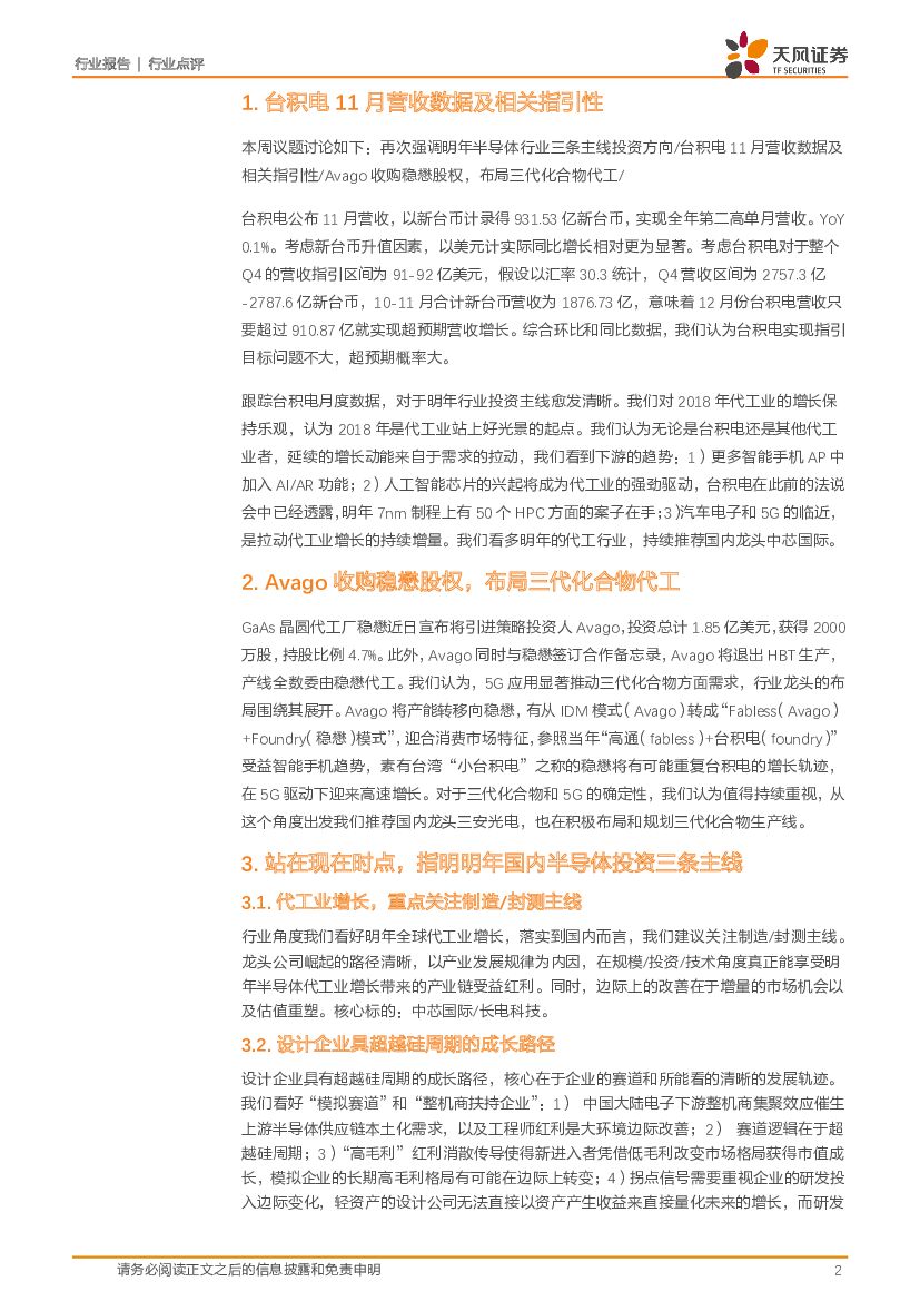 天风证券:电子制造行业点评:一周半导体动向:再次强调明年半导体行业三条主线投资方向.pdf