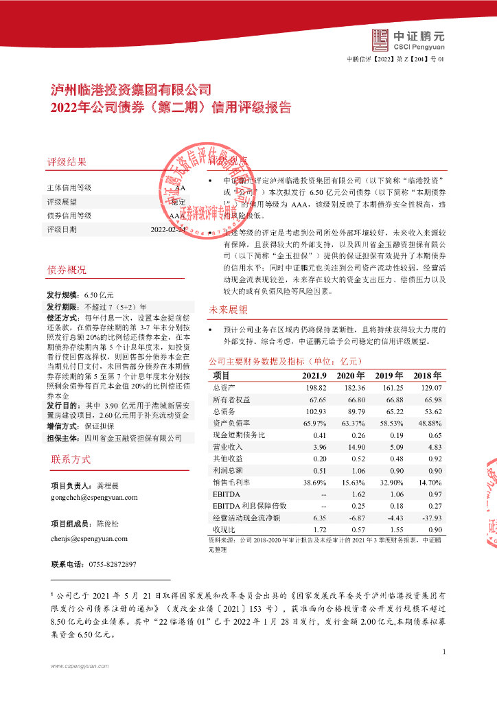 鹏元:泸州临港投资集团有限公司2022年公司债券(第二期)信用评级报告.pdf