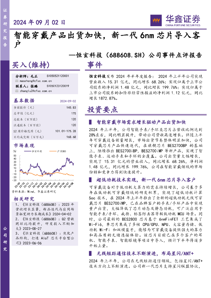 华鑫证券:恒玄科技(688608)-公司事件点评报告:智能穿戴产品出货加快,新一代6nm芯片导入客户.pdf