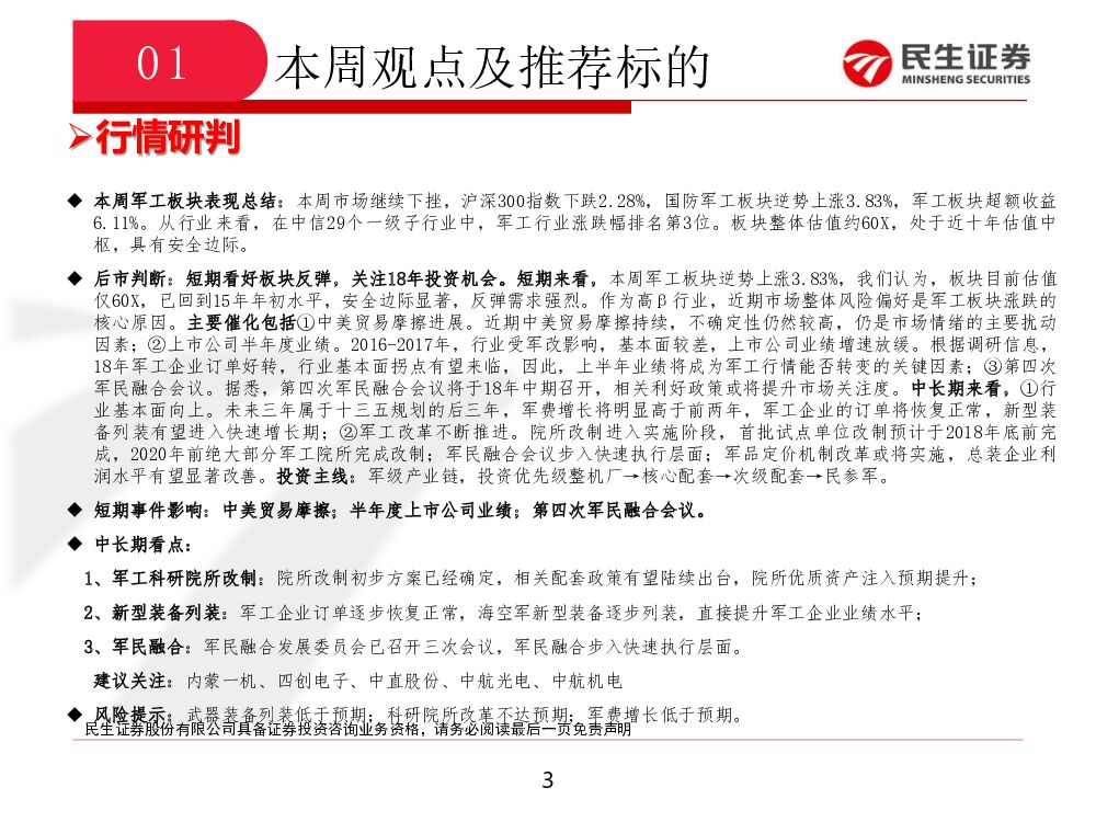 民生证券:国防军工行业周报:短期看好板块反弹,关注18年投资机会.pdf