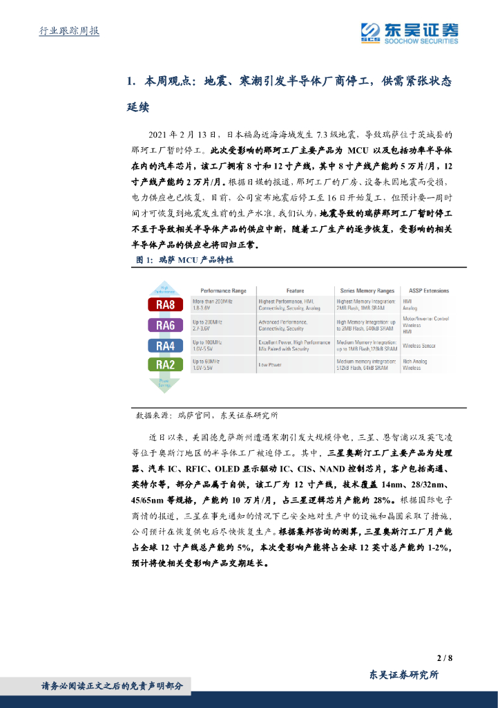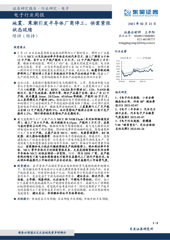 东吴证券:电子行业周报:地震、寒潮引发半导体厂商停工,供需紧张状态延续.pdf
