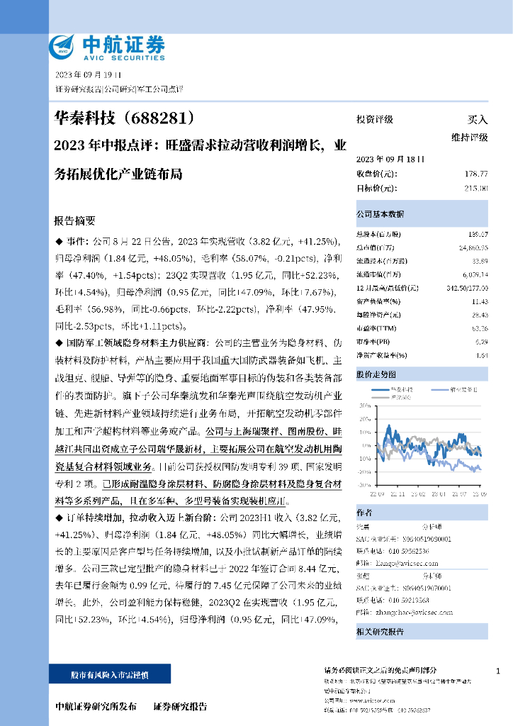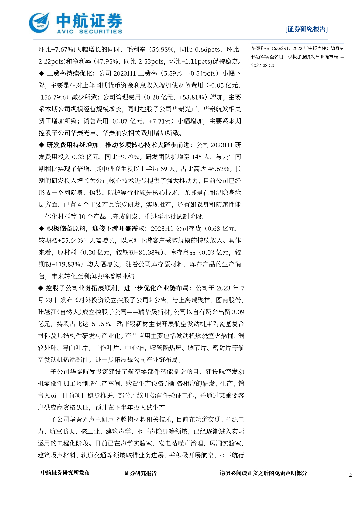中航证券:华秦科技(688281)-2023年中报点评:旺盛需求拉动营收利润增长,业务拓展优化产业链布局.pdf