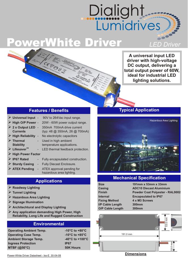 LUMIDRIVES - 53.0 mm 33.0 mm 191.0 mm Environmental Operating Ambient Temp. -10∞C to 80∞C Operating Case Temp 数据手册.pdf