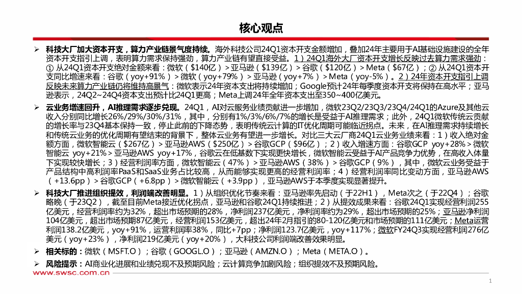 西南证券:海外科技公司2024Q1业绩总结-软件篇:资本开支持续增长,云业务增速逐步回升.pdf